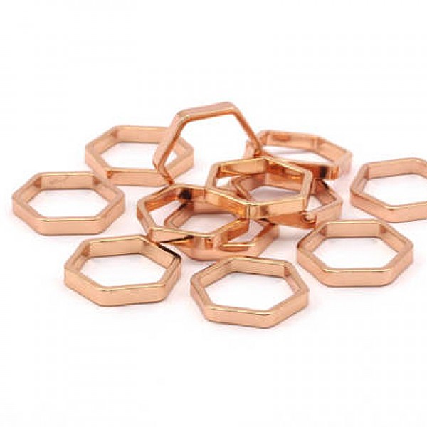 12x0.8x2mm Rose Gold Plated Hexagon Geometric Link Rings - Pack of 4