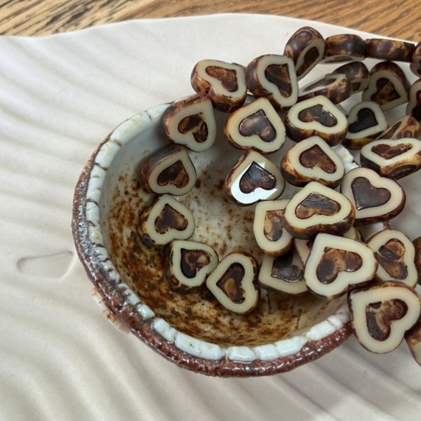 12x14mm Czech Table Cut Hearts - Beige Dark Picasso - Pack of 2