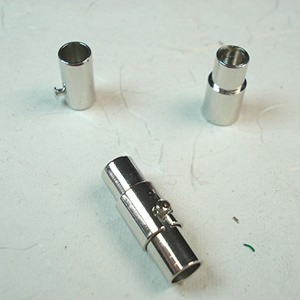 Nickel Free Magnetic Copper Clasp, Platinum Silver Colour, about 4mm wide, 15mm long, Hole: 3mm. Opens and closed with a twist & pull mechanism that acts to lock the clasp into place adding addiitonal security to the already strong magnetic bond.