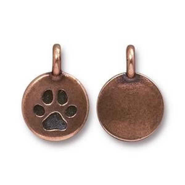 17mm TierraCast Antique Copper Plated Paw Charm - Pack of 2