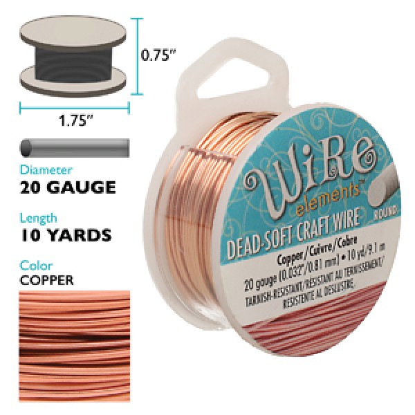 20ga Beadsmith Wire Elements Dead Soft Anti-Tarnish Craft Wire - Natural Copper - 10yd (9.1m)