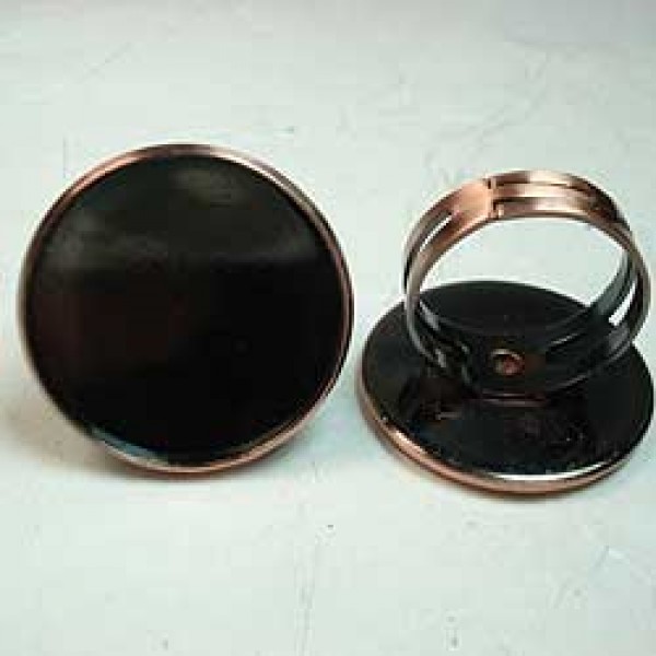 Nickel Free Antique Copper Plated adjustable size rings - approx 17mm inner diameter (unstretched) Bezel Tray measures approx 25mm outer diameter x 3mm deep, inner diameter 22.5-23mm. Great for resin or other mixed media ring designs!