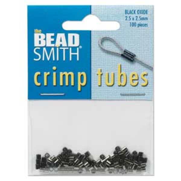 2.5x2.5mm Beadsmith Black Oxide (Gunmetal) Plated Crimp Tubes - Pack of 100.
