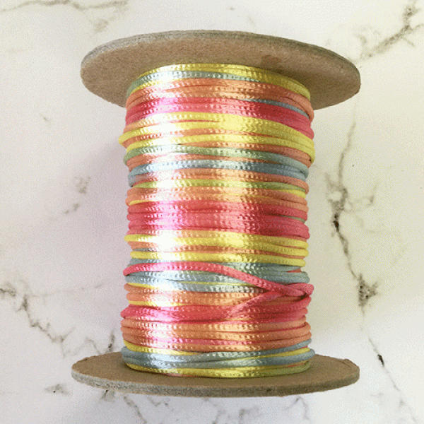 2mm Satin Rattail Cord - Pastel Multi - Per 5 metres