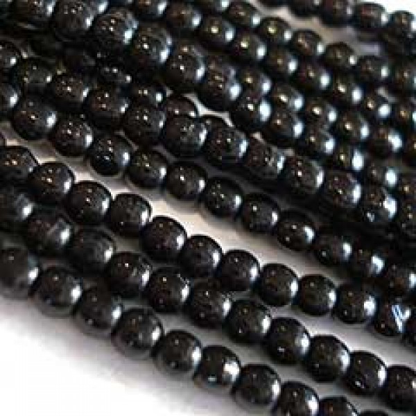 3mm Czech Round Pressed Glass Beads - Jet Black - Pack of 100