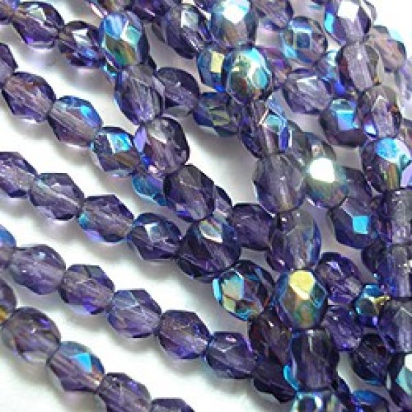 4mm Czech Firepolish Beads - Tanzanite AB - Pack of 50