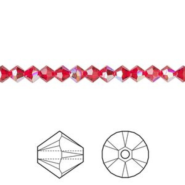 4mm Swarovski 5328 Faceted Bicones - Light Siam AB - Pack of 10