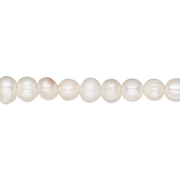 5-6mm D Grade Creamy White Semi-Round Potato Freshwater pearls - per 16" Strand (approx 70pc per strand)