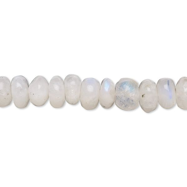 Generally a white stone, rainbow moonstone is semi-translucent, often with blue iridescent flashes that reflect as it moves.