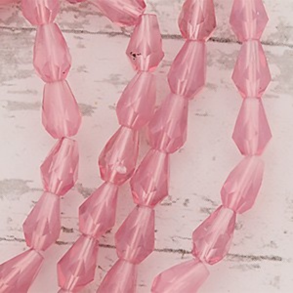 Soft Opal Pink 5x7mm Fire-Polished Drops - made in the Czech Republic. Hole runs vertically.
