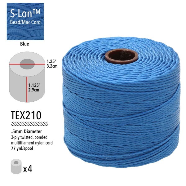 Beadsmith S-Lon Bead Cord #18 (0.5mm) - Blue - 77yd (70m)