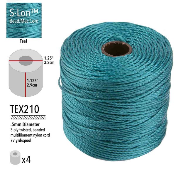Beadsmith S-Lon Bead Cord #18 (0.5mm) - Teal - 77yd (70m)