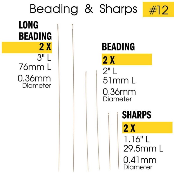 Beadsmith Size 12 Sharp Beading Needles - Made in England. Sold in pack of 6. Fine needles which can be used for Pearl Stringing or bead weaving and other general uses.